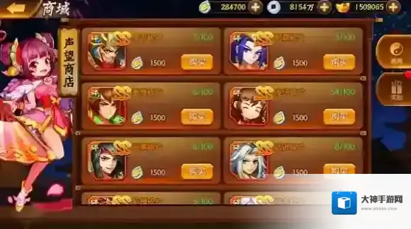 声望可以在声望商店中兑换武将碎片、进阶丹、天命丹等物品。