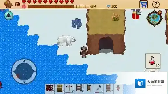 3、进入地图后点击左边的摇杆控制角色移动,点击右下角的手掌可以进行互动,下方的方框可以放入各种道具物品。
