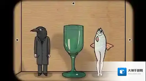 6、酒杯视角:酒杯旁的黑蛋变成的乌鸦先生(这应该是乌鸦先生第一次登场),鱼的尾巴变成了双腿(看起来怪恶心的);点开游玩多米诺骨牌得到的(纸),将乌鸦先生和鱼摆成和纸对应的样子;将(雪茄)塞入鱼嘴中,获得成就(熏鱼),用(点燃的火柴)将雪茄点燃;点击中间的酒杯,酒杯中冒出了红色的液体。