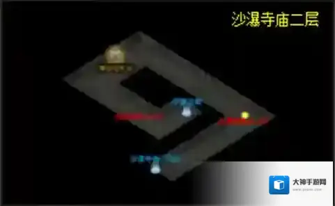 练级地图3:沙瀑寺庙2层(黄点、黄金挂机点),怪物为沙瀑雕像(Lv76)和沙瀑战将(Lv77)。