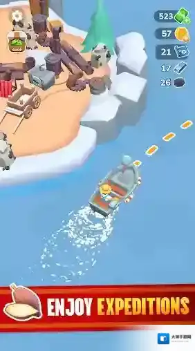 1、游戏中拖动屏幕即可移动角色进行移动,砍伐树木获得资源。