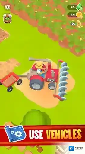 随着区域的不断解锁,我们将会体验到更多内容丰富的玩法,并且还会得到各种类型的农作物,通过种植来获得大量的钞票!通过努力的经营让自己的小农场慢慢发展成为大型农庄,成为真正的农业大亨!