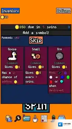 2、152个符号和227个物品可以组合,丰富多样的肉鸽搭配能够实现,让你通过多种不同流派赚取更多金币。