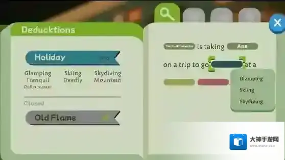你将扮演主角来收集各种线索解开案件,通过和NPC对话来获得有用的线索,将这些线索填入空白区域来获得有用的信息,一点一点探索和互动来解开谜题获得真相。