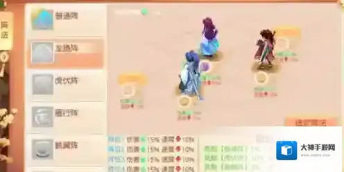 每种阵法之间存在克制关系,合理搭配阵法有助于轻松应对强敌。阵法可通过商会或藏宝图获得。