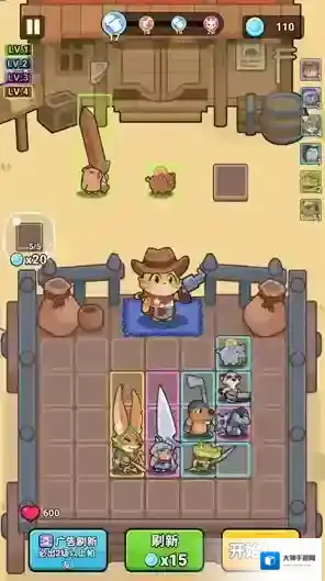 2、进入关卡后玩家可以选择初始英雄进行战斗,相同品质的英雄可以合并来提升等级。