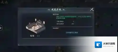 1、玩家首先要升级校场,校场可以使玩家配置部队,增加玩家出证的部队数量,执行更多命令。