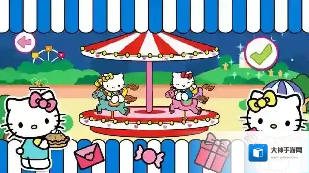 1、有凯蒂猫角色、凯蒂猫形象的店铺(展示糕点、水果等商品),属于儿童向、休闲类的凯蒂猫主题,玩法可能围绕店铺经营、互动体验展开。
