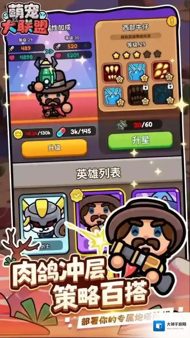 2、英雄升星,升星可以提高英雄的等级上限,同时增加基础属性。