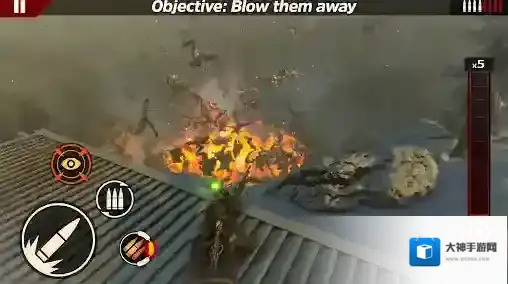 3、瞄准好僵尸之后,点击左下角的子弹即可射击。