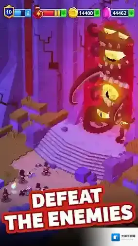 玩家们可以通过合成的方式去解锁各种武器,强化英雄的战斗力;也可以对多样丰富的影响进培养,组合出更加强大的战斗力,通过各种方式提升王国整体的实力,去征战更多的区域!