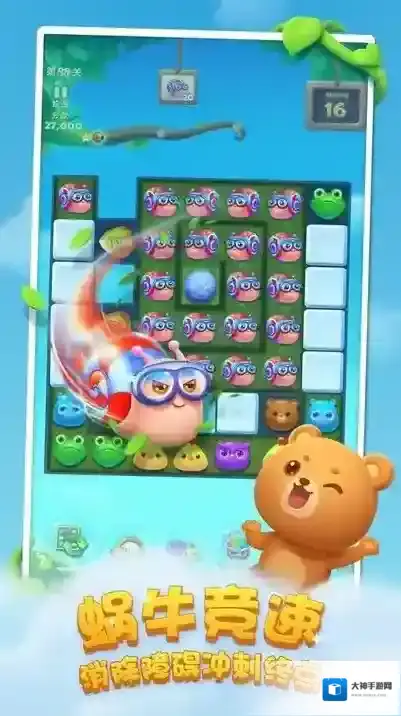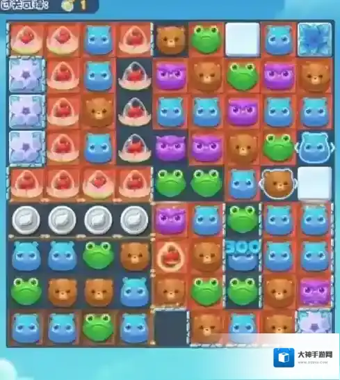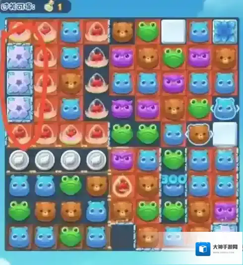 我们将大眼移出来之后,将它们尽可能的移动到相同的小动物旁边,这样就可以让它们率先爆炸,这样场上就会出现更多的相同图标了。接着就是能够合出什么爆炸方块就合什么,有魔力鸟最好,没有的话十字爆炸也凑合。只要能够将四个角落的冰块给清除了,那么后续三星基本上就稳了。