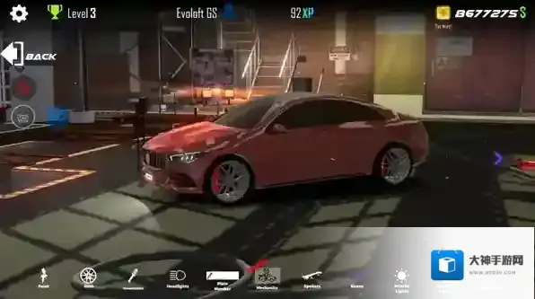5、在主界面点击左下方的车库按钮可以进入车库,在车库里你可以自由改装自己的车辆和解锁新的汽车。