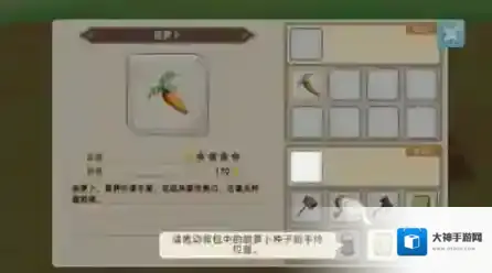 这里有个小技巧:第一天可以不用开垦农田,等第二天卖掉胡萝卜,用所得的钱刚好可以升级工具,把洒水壶升级一次后,一次就能浇三块田,非常方便。