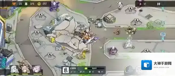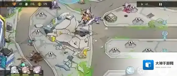 1、怪物会在红圈标记的地方出现,玩家需要在设有标牌的位置建造机关枪、发射炮和盾牌等防御设施。