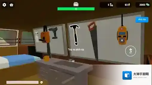 2、在房车头有着绳索,长按即可拉动,将其绑在树木上。