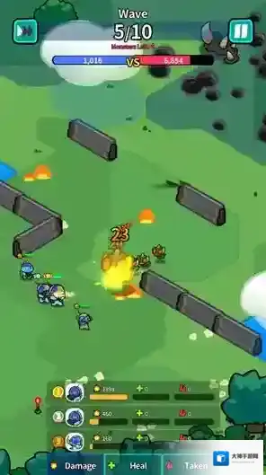 3、放好小兵后点击出发按钮来开始闯关,点击出发后小兵会自动攻击出现的敌人。