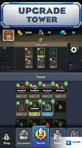 1、武器、衣服、装备、塔楼,应有尽有!你可以收集并升级它们,提升自己的战斗力,迎接更多挑战。