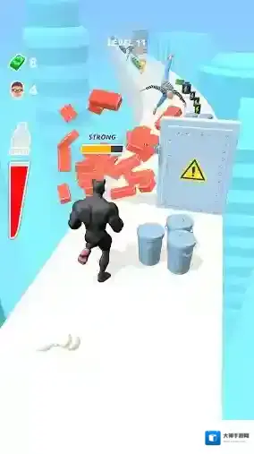 1、真实动态张力!迅速凶猛的街机游戏玩法,无穷无尽的障碍关卡,以炸开你前方道路。看着你的肌肉随着你的力量增长!