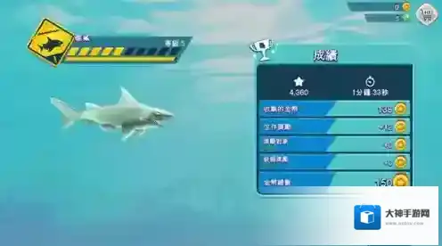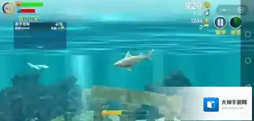 3、注意屏幕左上角的饥饿值,及时进食避免饿死。完成任务可获得金币,用来购买新鲨鱼或升级属性。