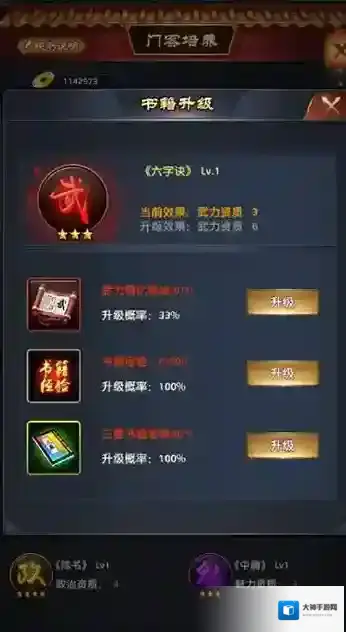 4、门客的书籍也是可以通过使用一些道具来进行提升的,这些书籍也是会为玩家带来额外的提升,只要拥有道具,就可以对自己门客的书籍进行提升!