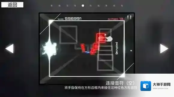 将手指保持在方形边框内来接住这种红色方形音符