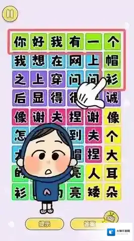 我有一个帽衫带来别具一格的文字解谜体验,通过发现语句间的隐藏关联破解关卡,简洁界面聚焦思维挑战,逐步解锁的谜题考验逻辑推理与联想能力,在趣味互动中锻炼大脑灵活性,既适合休闲娱乐又能提升语文素养,每个成功解开的谜团都带来满满成就感。