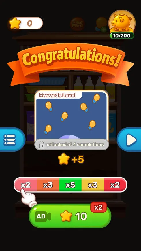 2.通关后记得点击领取星星时注意滑动条上的倍数
