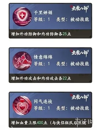 夫妻同心,其利断金。独属于侠侣间的夫妻技能,自然也会在手游中呈现。二人携手同行,在战场上大杀四方,这场景是不是十分令人心动?有了侠侣技能,不仅能更好地保护意中人,在战场上也能助TA一臂之力。
