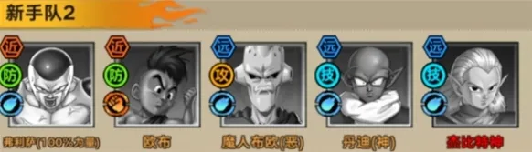 一套平民悟空队伍,后排输出可以换成超赛贝吉特或者SSG孙悟空,辅助可以换成赛亚蒙面超人或者丹迪(神),相较于新手队这套更强但获取也更难。
