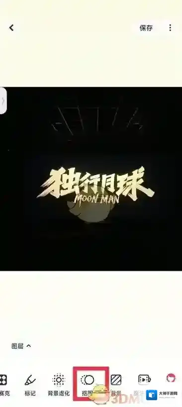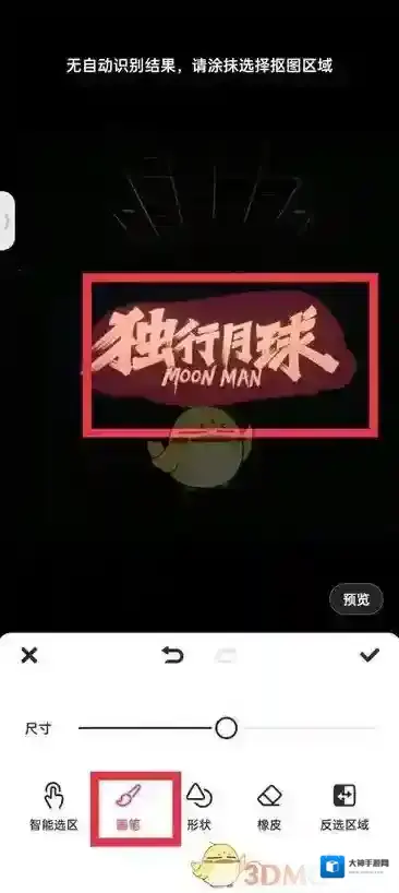 3、在抠图功能的页面使用画笔涂抹出要抠的字然后点击对号图标;