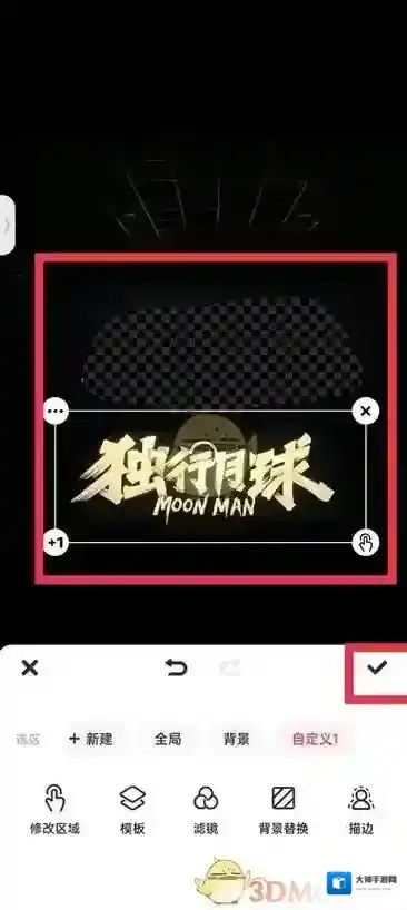 4、跳转到下一页面即可看到抠出来的字编辑好之后点击对号图标即可。