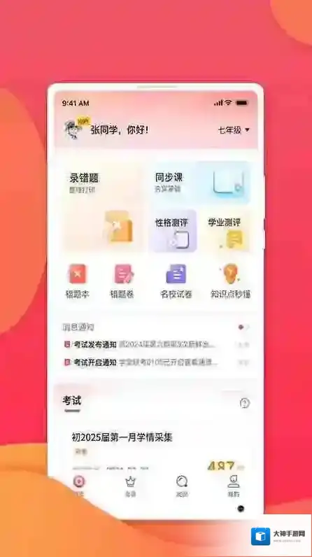 七天学堂查成绩app,一站式学习平台,覆盖小初高中不同学段不同学科的知识,教师在线授课和解答疑问,提供详细的知识点,让学生除了书本知识的学习以外,还可以在课外学习更多的知识,根据重难点可以有针对性的做练习题,并且支持查询各科分数,软件提供海量题目资源,让用户可以随时随地进行练习和复习。