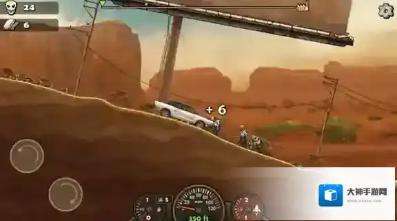 3、进入关卡后左边控制车辆的前翻和后翘,右边控制车辆的油门,点击可以加速前进。