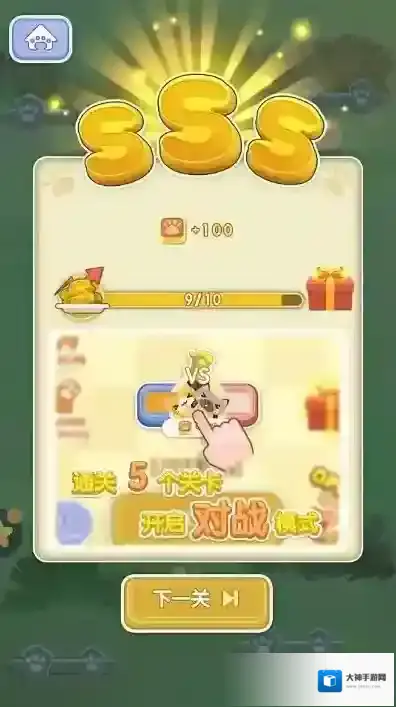 3、萌系画面风格:采用卡通画风打造可爱的猫猫角色与清新的方格场景,搭配柔和的色彩与流畅的动画效果,营造治愈的游戏氛围。