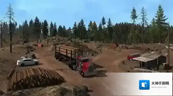 1、驾驶红色运木卡车,在林场土路行驶,避障碍、其他车辆,稳运木材,适应越野路况。