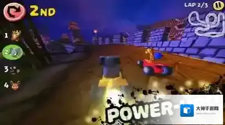 2、驾驶蓝色卡丁车(或解锁角色),在丛林赛道熟悉操作,借虚拟按键控方向、加速,避障碍、吃道具。