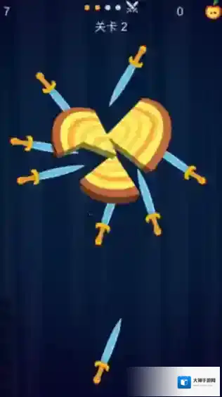1、核心闯关操作:面对旋转的轮盘,点击屏幕发射小刀,确保插入空闲位置(相同位置不超过两把),直至所有小刀命中轮盘完成关卡挑战。