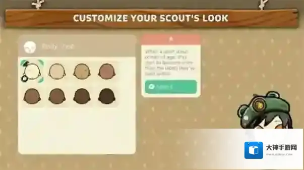 2、进入界面,在“BodyShop”中挑选角色肤色等外观选项,点击“Select”确定,定制侦察员外观。