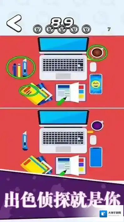 2、道具系统策略性强,放大镜可以查看细节,暂停时钟获得思考时间,提示箭头标记可疑区域。合理使用道具是突破高难度关卡的关键。