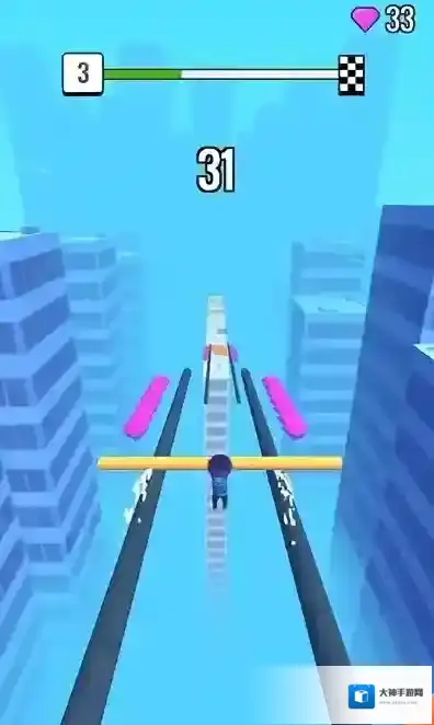 2、摆荡至合适角度时松开手指,让角色飞跃到下一个单杠或平台,遇到移动平台需提前预判其位置,把握最佳松手时机避免掉落。
