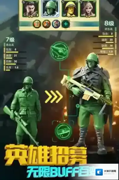 3、兵种与战术策略:兵人出击战力强劲,多样兵种组合搭配能大幅提升实力,升级兵种可进一步增强战力;战斗前需洞悉对手兵种类型,做出合适战术安排。