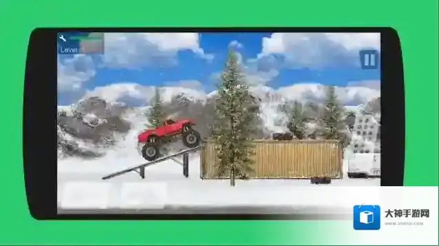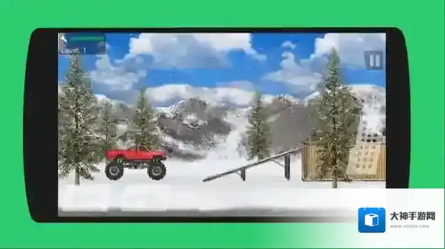 1、点击“NEW GAME”,选红色大脚车,进入Level1雪地场景,开启越野挑战,熟悉左右按键控方向。