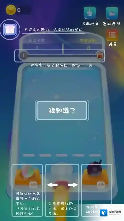 3、成功达成目标或获得高分后获得金币奖励,可用来解锁新的星球外观、宇宙场景主题或特殊道具,为后续挑战增添更多乐趣。