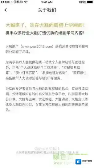 大触来了,站在大触的肩膀上学画画!携手众多行业大触打造优质的绘画学习内容!致力于打造专业的绘画学习平台,每套课程都由业内资深大触倾囊相授,包含漫画、插画、水彩、原画等各类绘画课程,还有海量大触直播视频和绘画资源!