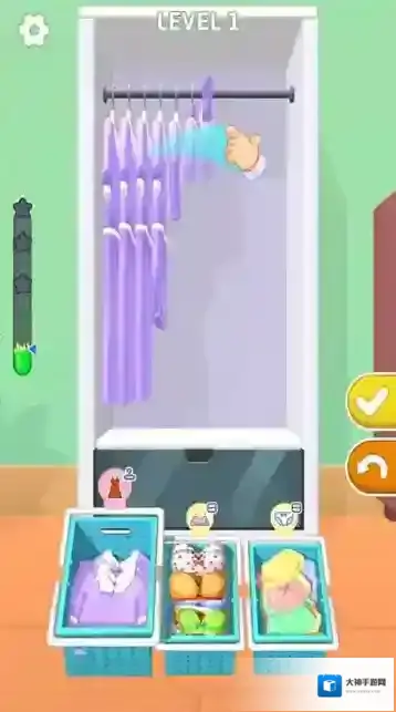 1、整理能力考验:玩法简单,主要考验玩家的整理解决闯关能力,需根据衣物的材质、颜色、款式等进行分类,合理利用衣柜空间,将衣物整齐地摆放好,完成关卡任务。