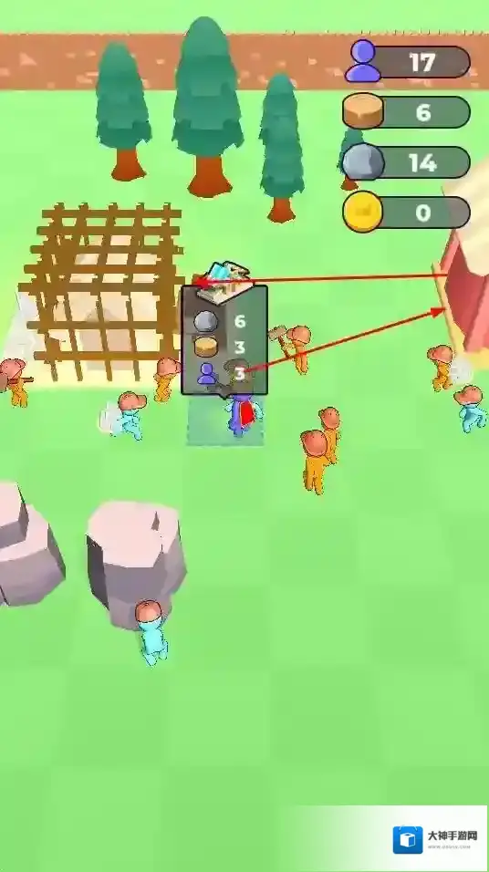 2、“采集资源”,指挥村民前往森林、矿区,采集木材、石头,积累建设材料。