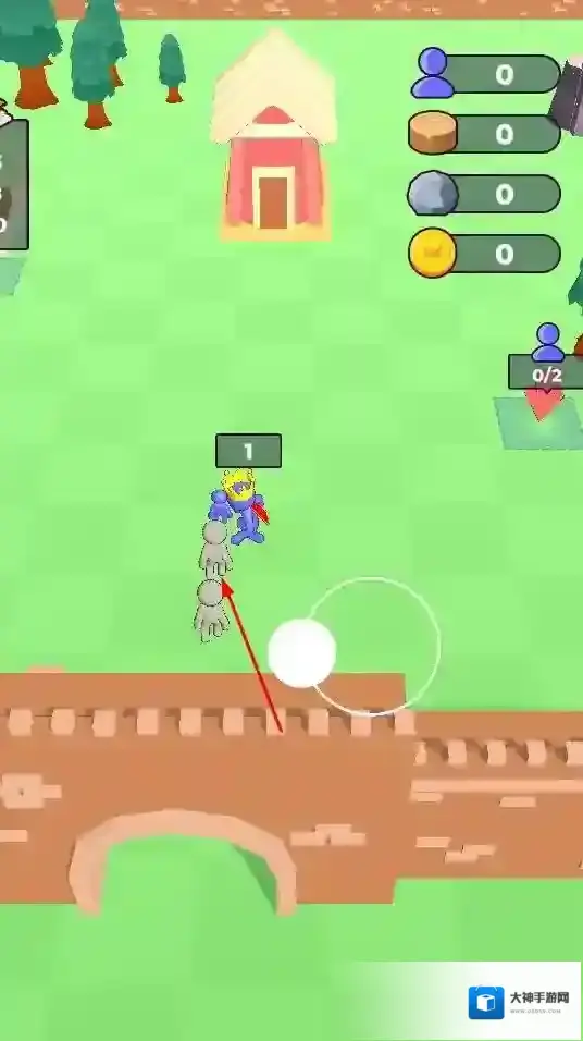 1、“招募村民”,在地图指引处,集结村民(灰色、绿色),扩充部落人力。