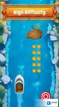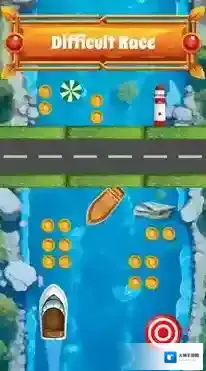 3、紧盯终点靶心,保持航线,灵活躲障碍、抢金币,冲过终点完成关卡,解锁新赛道、艇具,提升竞速技巧。
