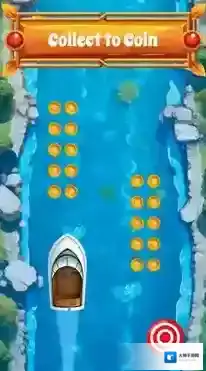 2、驾驶摩托艇,沿河道行驶,借左右操控(或触屏)避礁石,直线路段优先吃金币(如成排金币),积累资源。